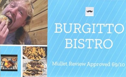The burgitto consists of a ¼ lb. steak burger, filled with a variety of toppings such as the classic vegetable fillings, Cincinnati style chili, shrimp, or even the fried green tomatoes, American, Swiss or pepper jack cheeses and condiments. It is wrapped in a flour tortilla and grilled to perfection.